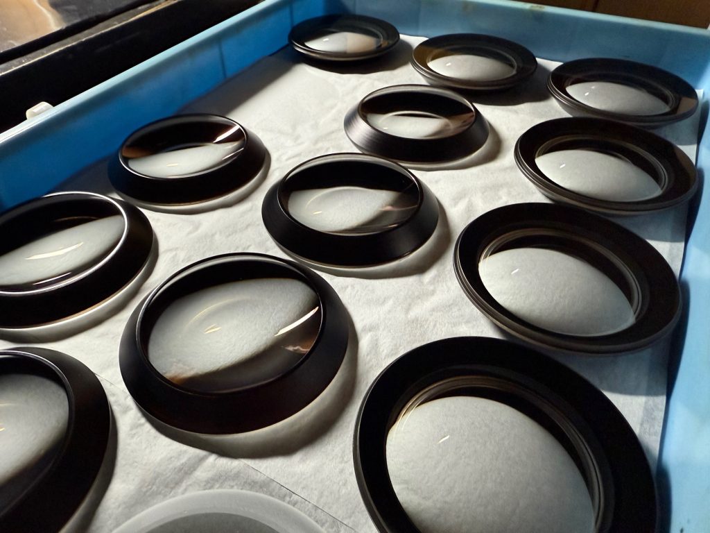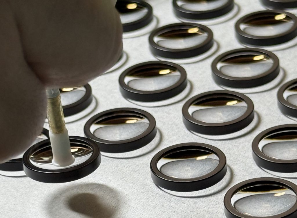 光学部品の外周・端面に墨を塗布し、迷光・反射を防止